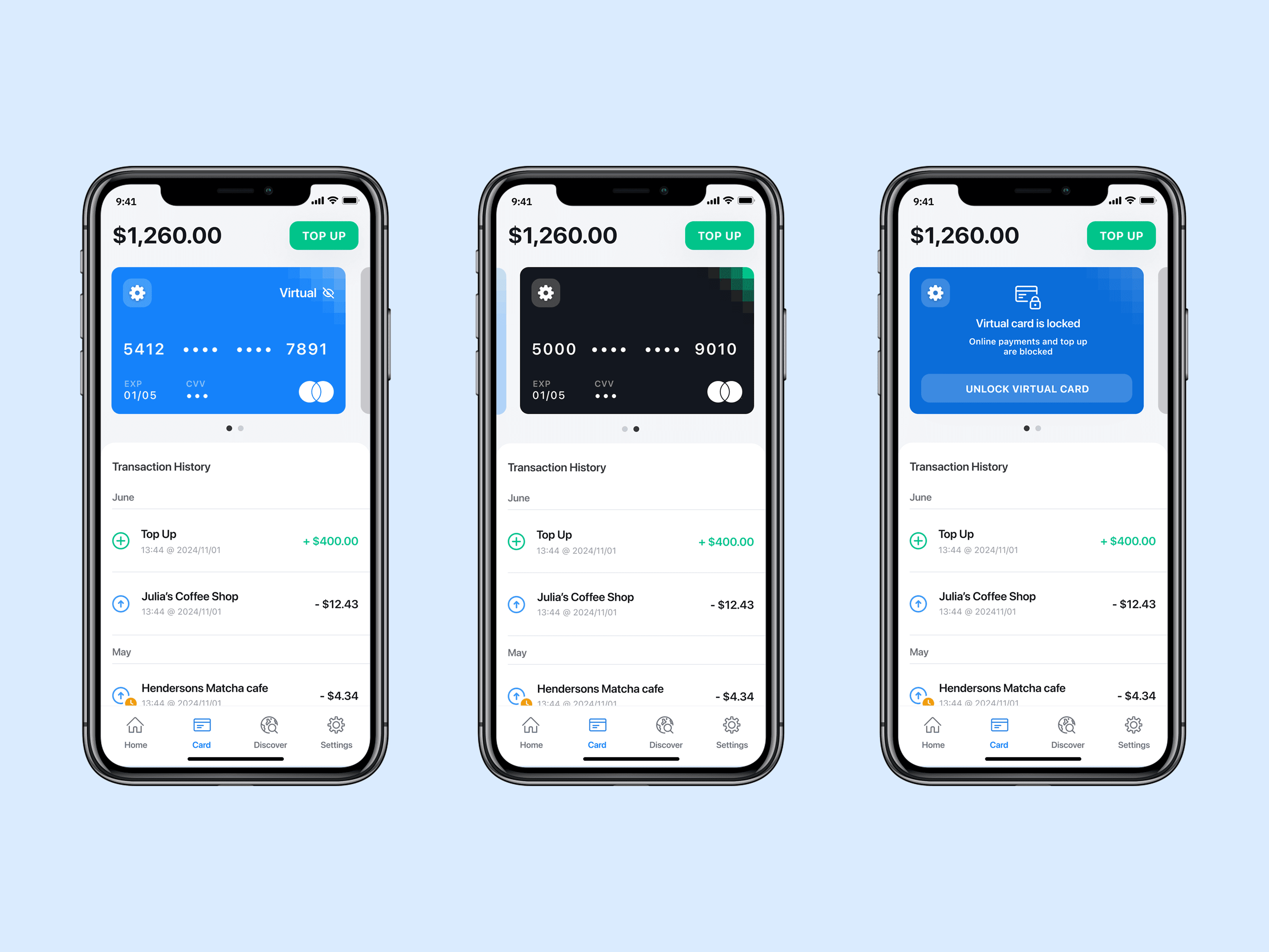 The primary goal of this screen was to ensure that every key feature is accessible in just one tap, making it easy for users to manage their card effortlessly.