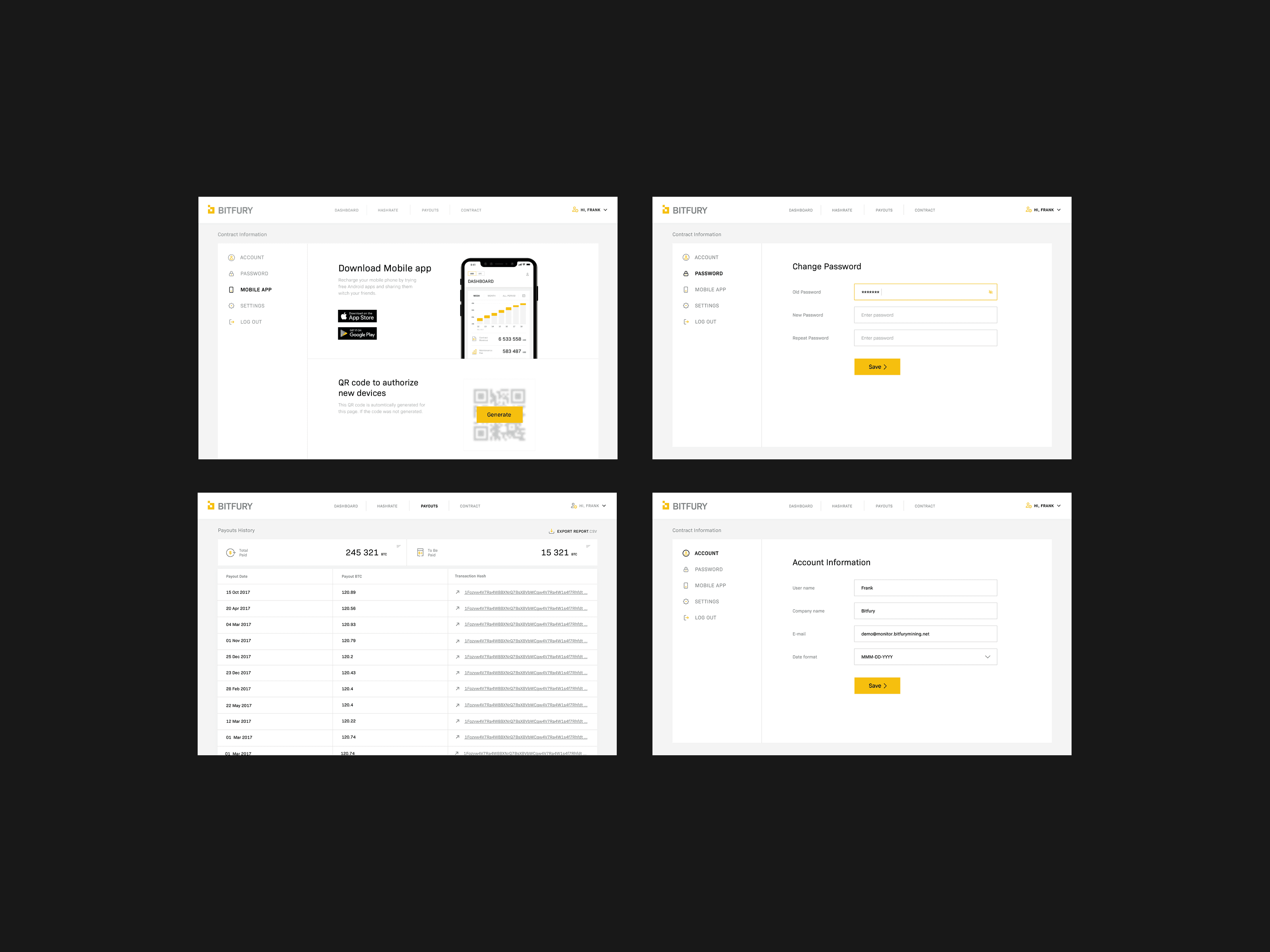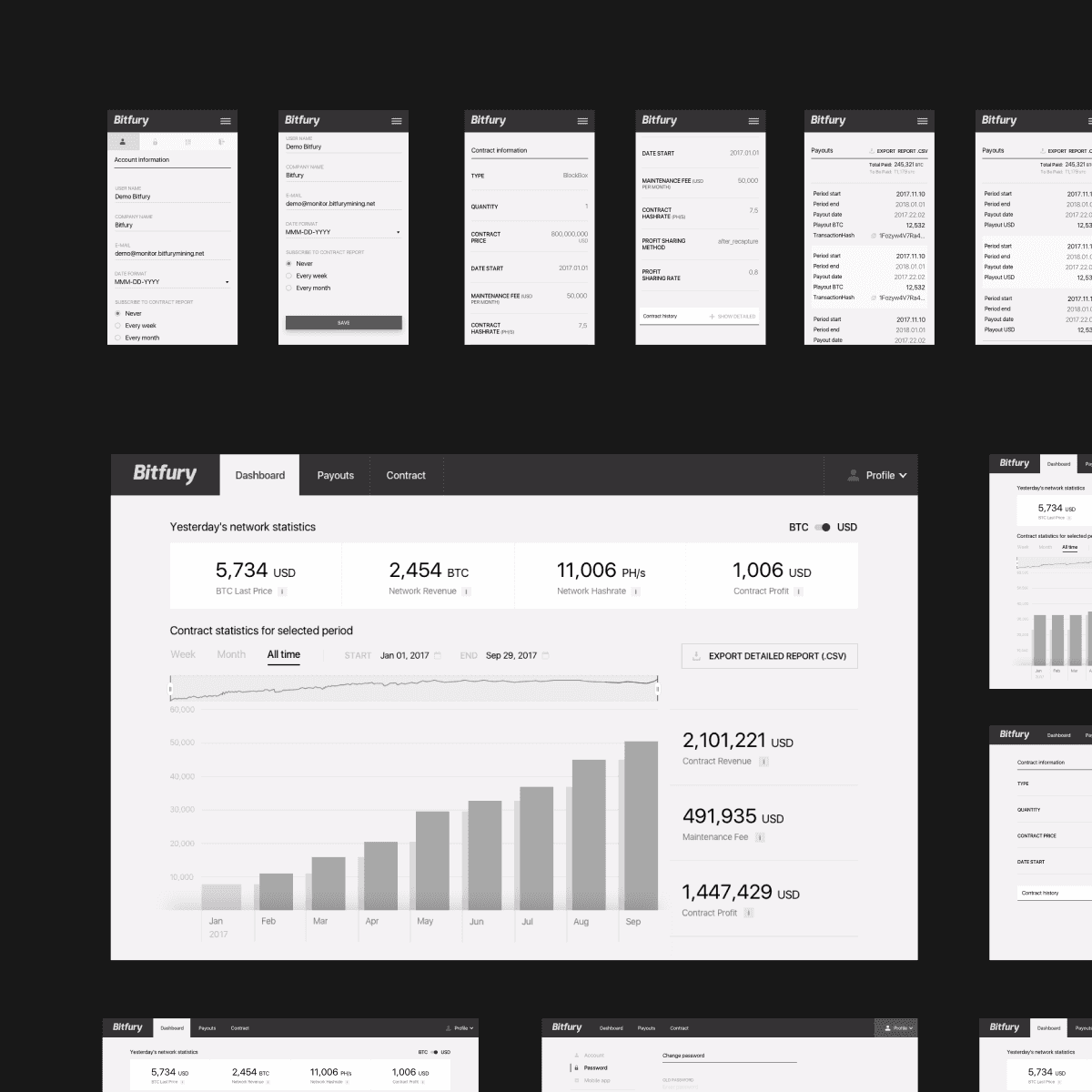 My primary challenge was redesigning and revising their product Bitfury Monitor, a client monitoring app that will display necessary information, parameters, and KPI of the system in real-time, according to the new brand guidelines, and provide usability and structure improvements.